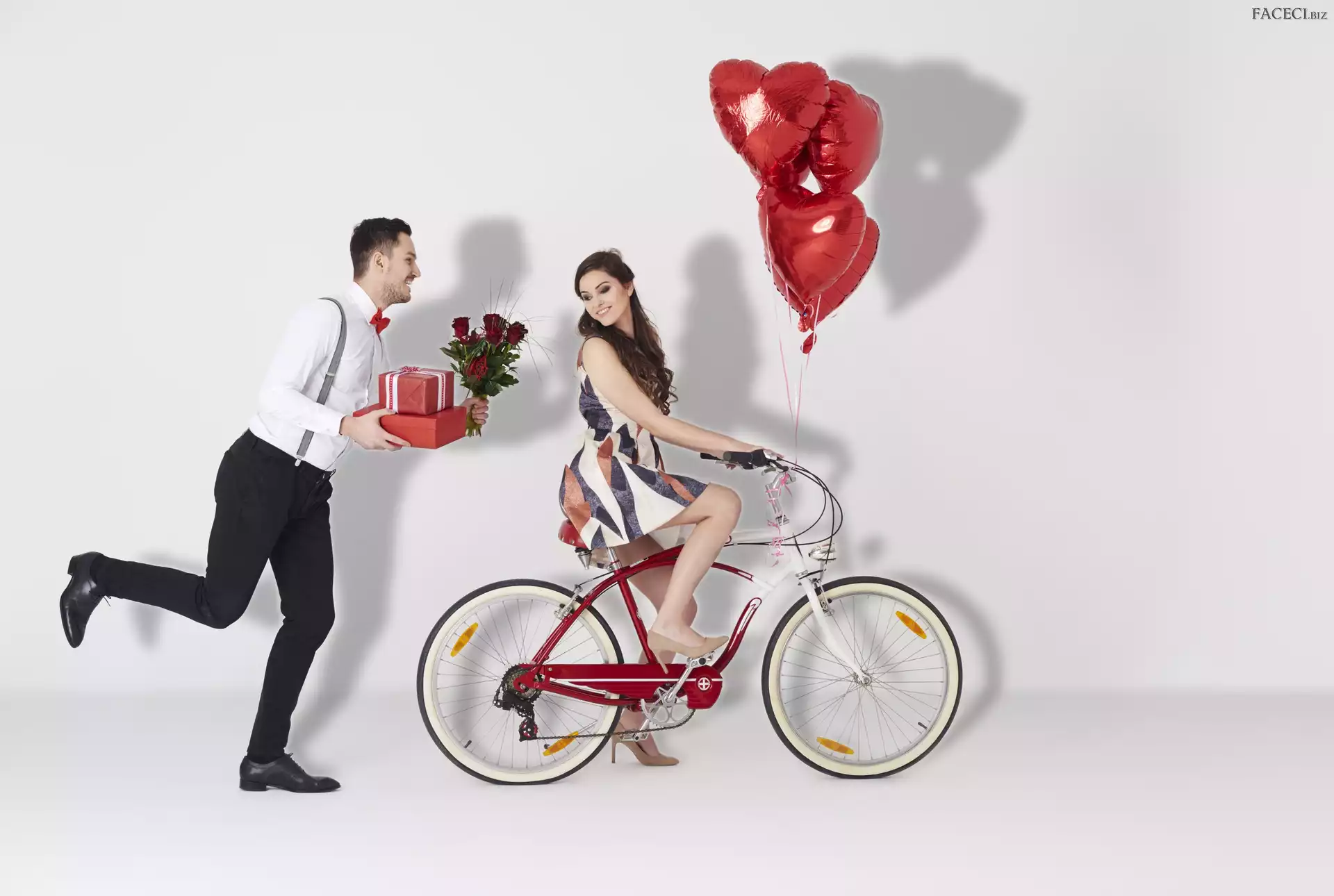 Serca, Kobieta, Miłość, Rower, Mężczyzna, Kwiaty - faceci.biz